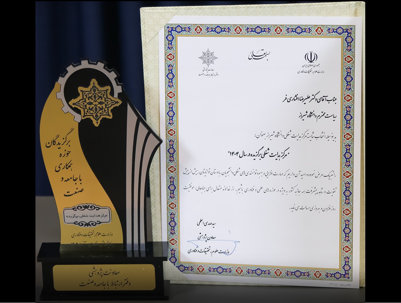 در این میان، باتوجه به زمینه گسترش خدمات مشاوره شغلی، مهارت‌افزایی و افزایش ارتباط مؤثر میان دانشگاه، صنعت و بازار کار، عنوان «مرکز هدایت شغلی برگزیده در سال ۱۴۰۴» به دانشگاه شیراز تعلق گرفت.