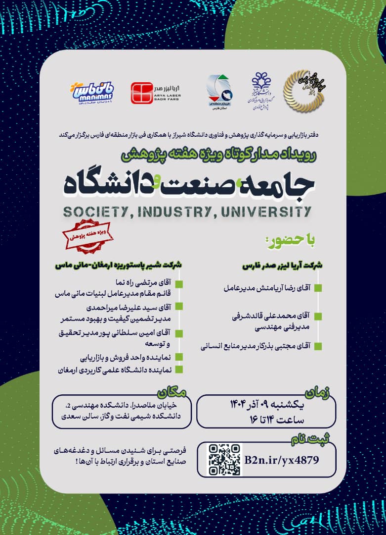 دفتر بازاریابی و سرمایه گذاری پژوهش و فناوری دانشگاه شیراز برگزار می کند: